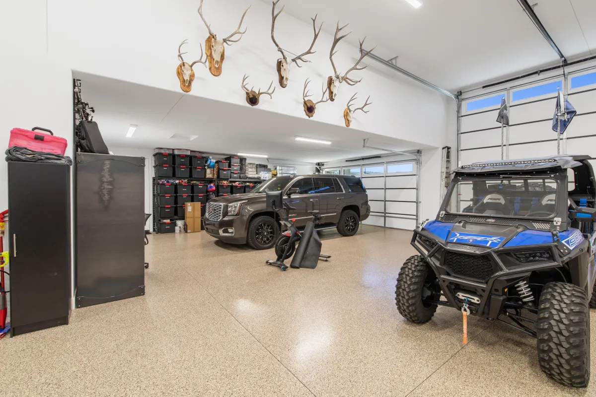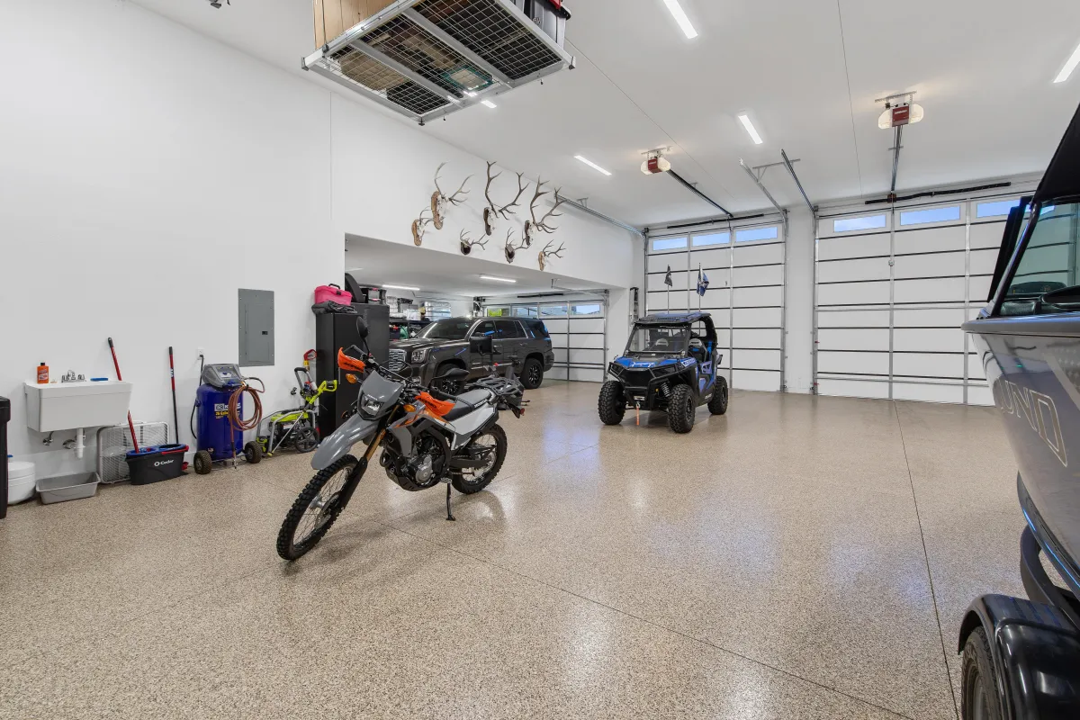 Now let's talk garage space! Double RV garage bays with mini split units, epoxy floors, built in workspace, overhead garage lifting storage and featuring almost 2300 sq ft. Dimensions are bay 1 8hx16wx29d, bay 2 14hx12wx45d, bay 3 14hx14wx67d. This home truly has it all!